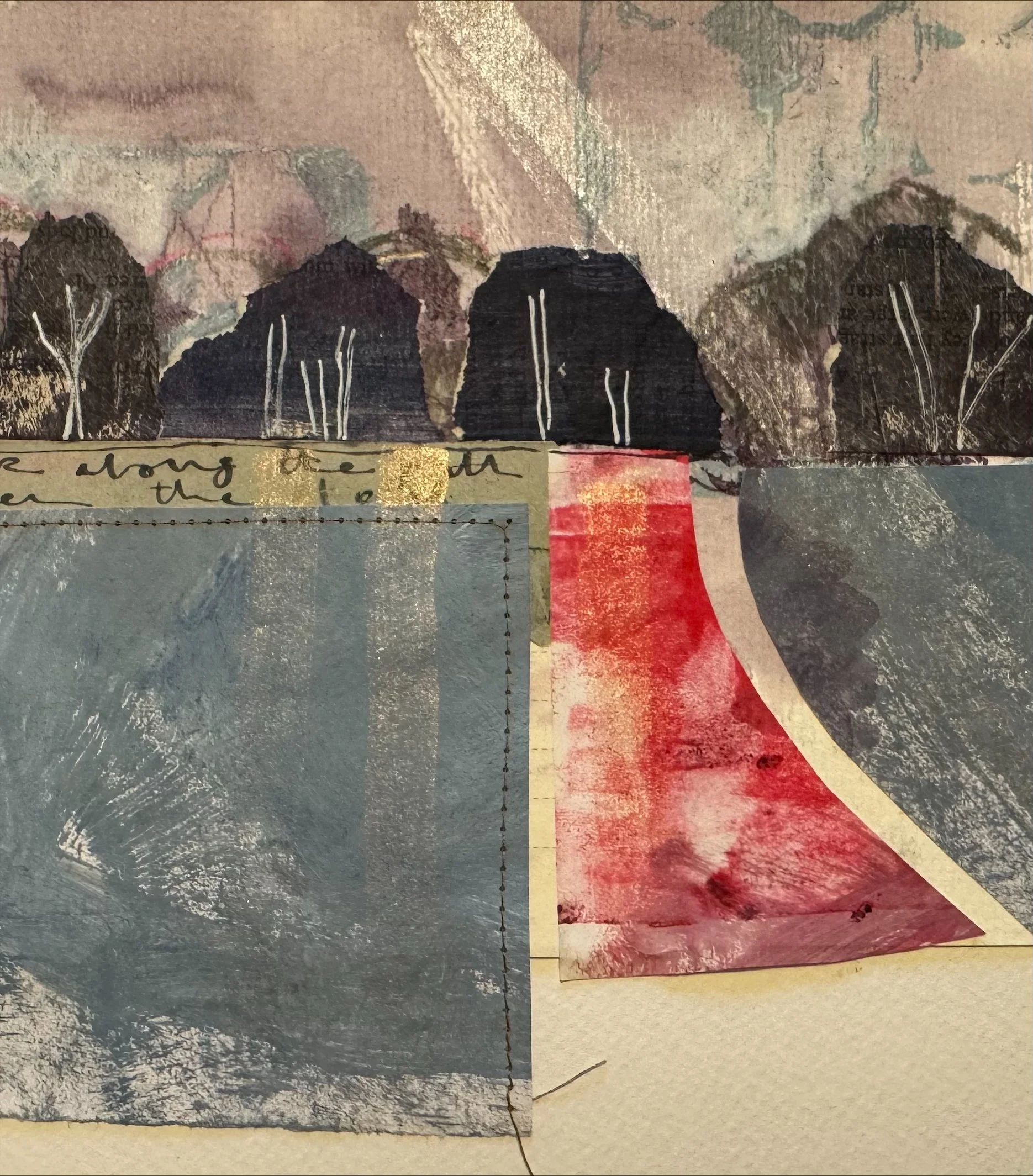 Wendy Henderson is a mixed media artist, capturing nature and the everyday small joys in life. She combines paint, drawing, collage and stitch to create layered, lively pieces. Wendy works intuitively, creating one off pieces developed from her sketchbook observations. She also has one-off handmade collage cards for sale.